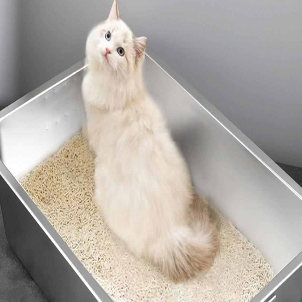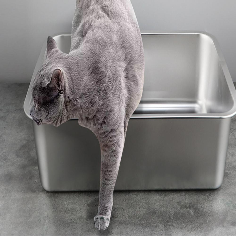 Large Space Litter Tray Durable Stainless Steel Cat Litter Box Spacious Low Entry Design for Easy Access Pet Accessories